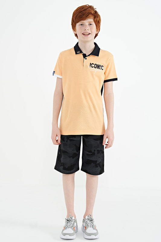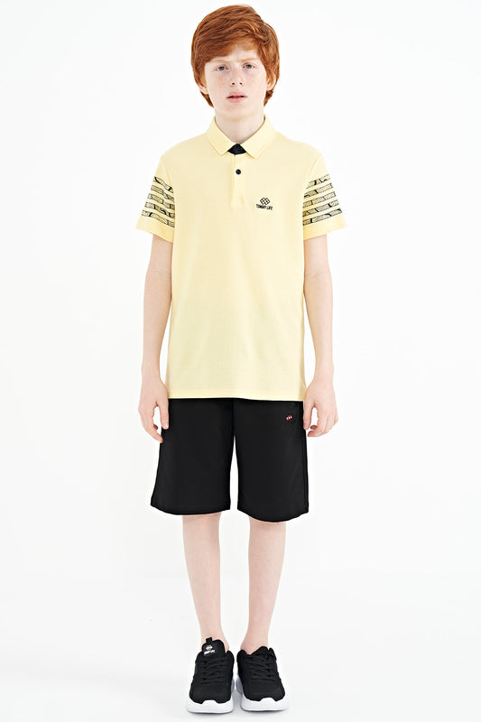 Standard Mold Polo Collar Detailed Sleeve Print Boys' T-Shirt - 11093