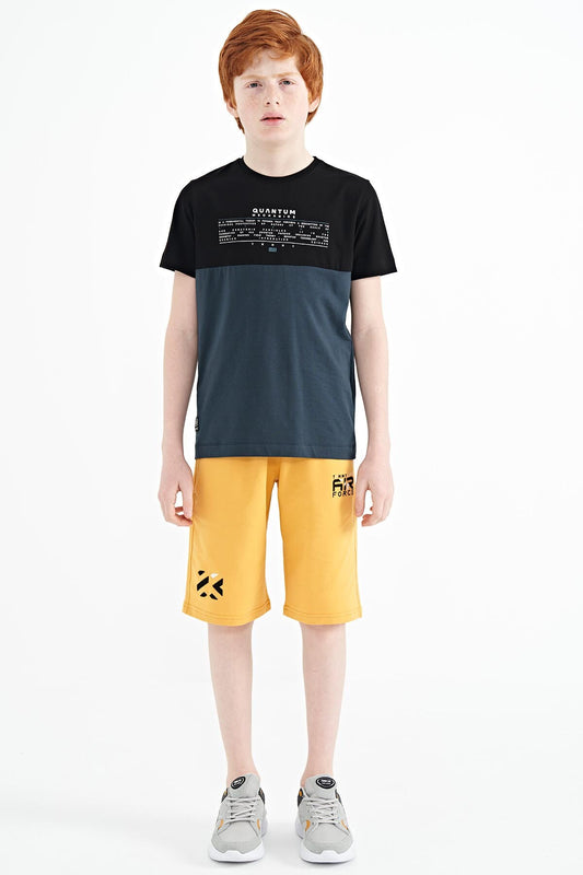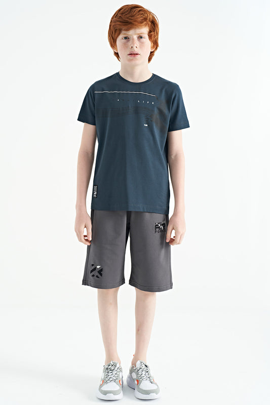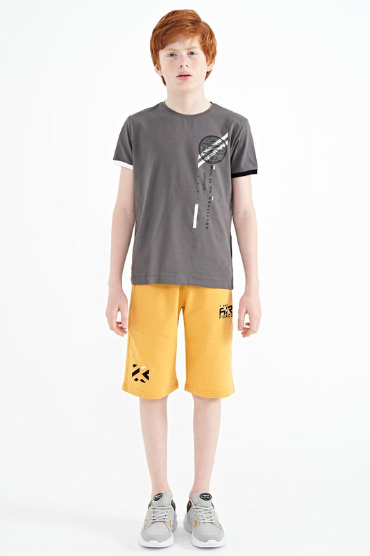 Dark Grey Print Detailed O Collar Standard Fit Boys' T-Shirt - 11131