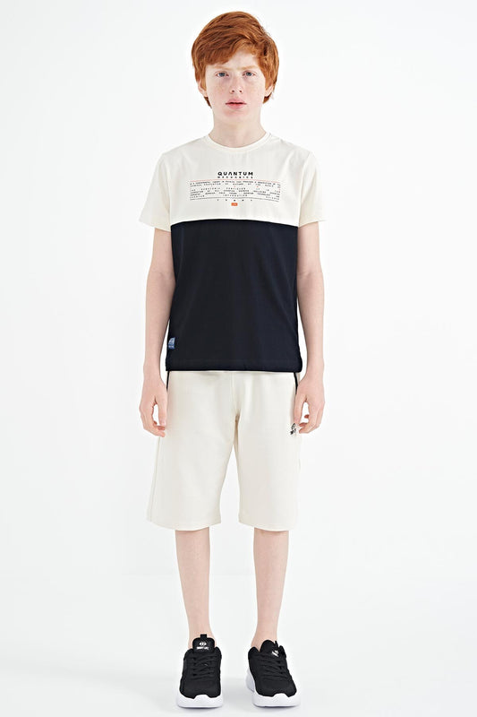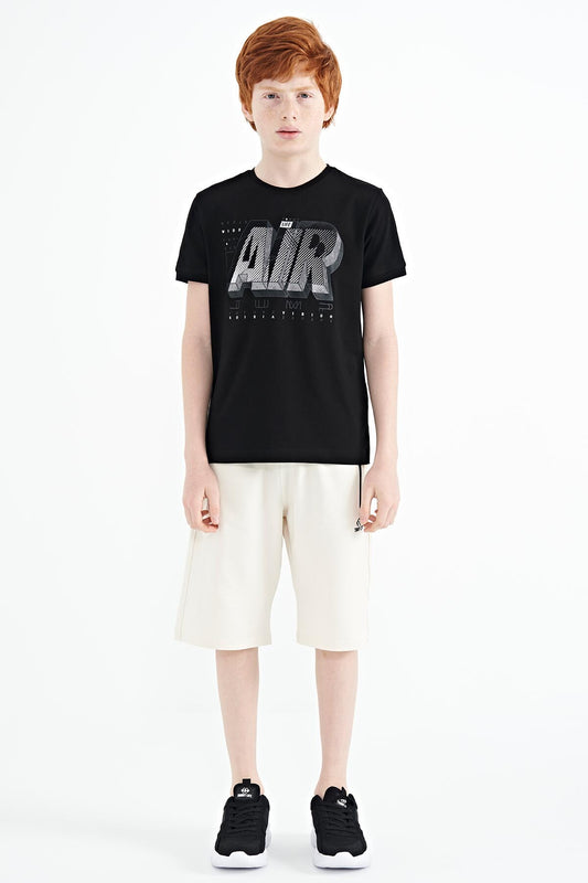 White Print Detailed Standard Template O Collar Boys T-Shirt - 11133