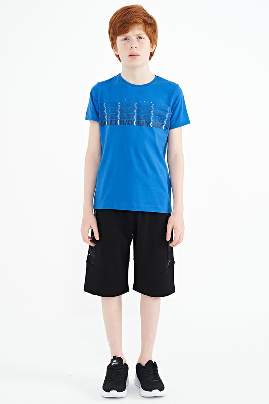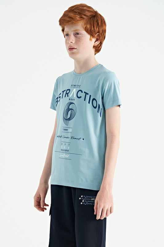 Light Blue Print Detailed O Collar Standard Fit Boys T-Shirt - 11103