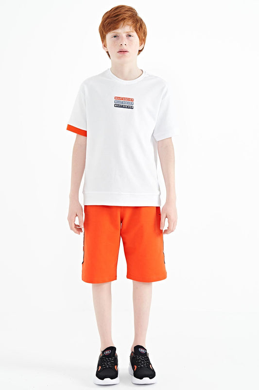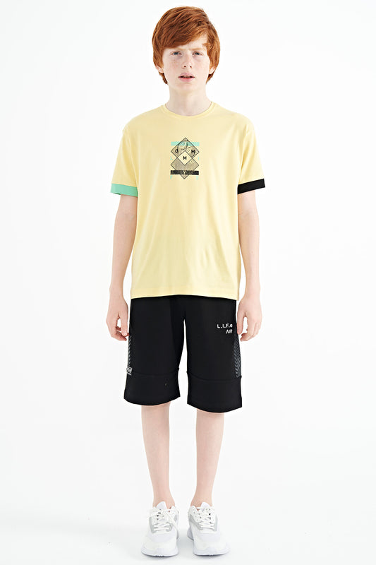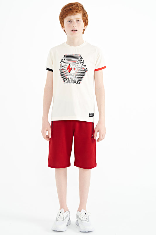 Ecru Collar Three-Color Detailed Print Standard Fit Boys' T-Shirt - 11156