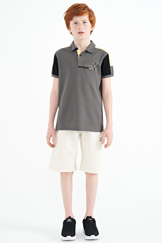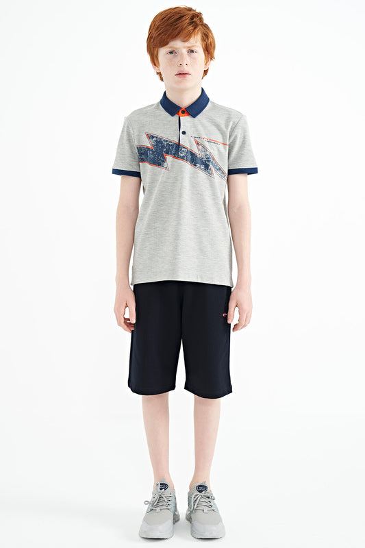 Grey Melange Print Detailed Standard Mold Polo Collar Boys T-Shirt - 11154