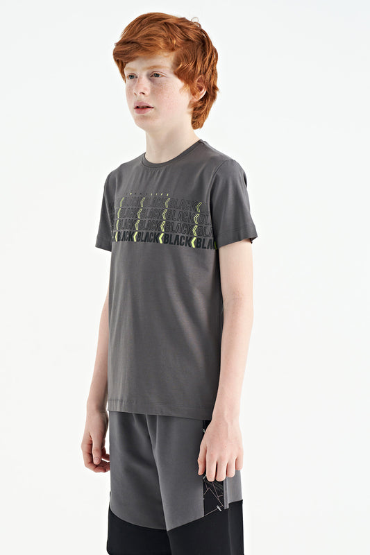 Dark Gray Print O Collar Standard Fit Boys T-Shirt - 11149