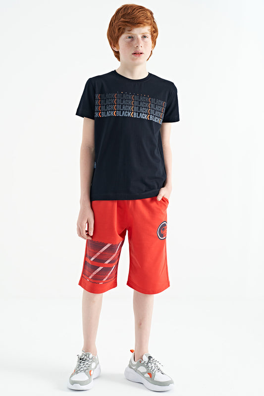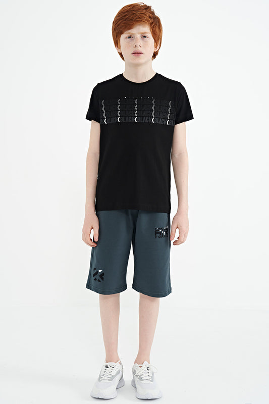 Black Print O Collar Standard Fit Boys' T-Shirt - 11149