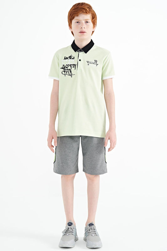 Light Green Embroidered Detailed Standard Pattern Polo Collar Boys T-Shirt - 11085