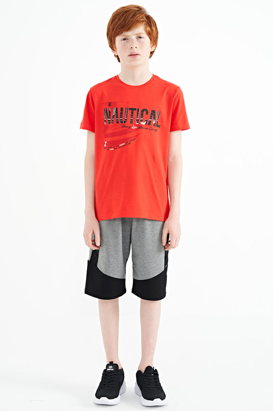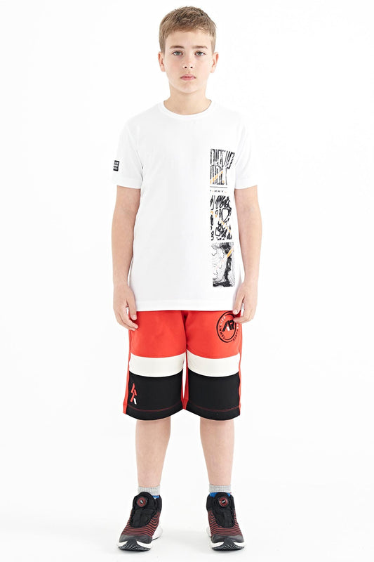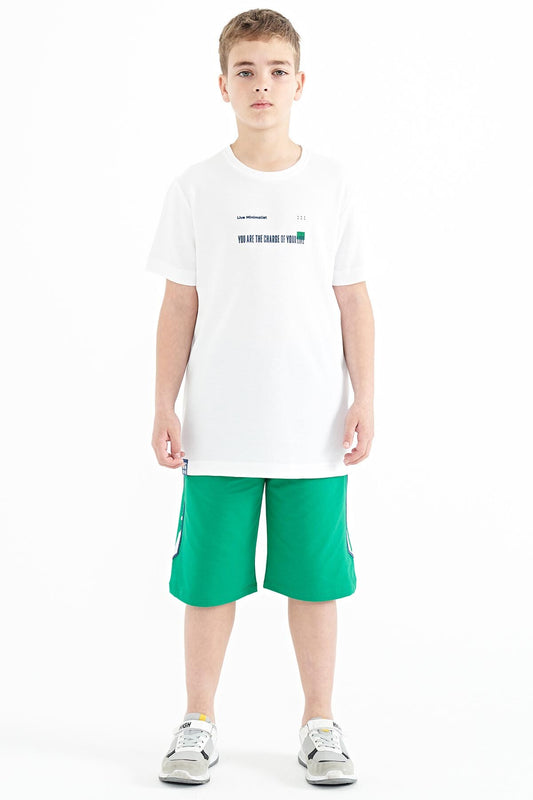 White Print Detailed O Collar Standard Fit Boys T-Shirt - 11145
