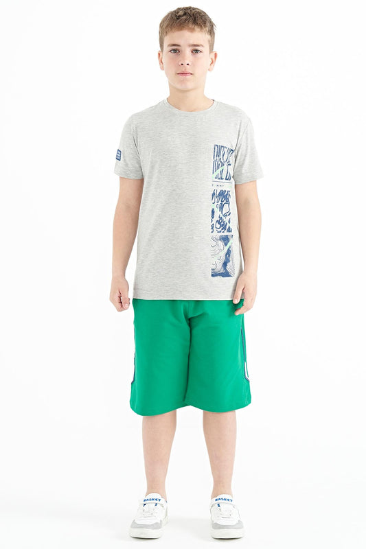 Gray Melange Print Detailed O Neck Standard Fit Boys' T-Shirt - 11104