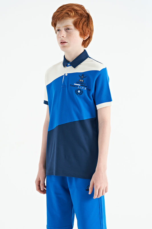 Indigo Color Block Embroidered Detailed Standard Pattern Polo Collar Boys T-Shirt - 11088