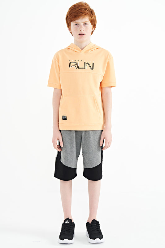 Melon Inner Kangaroo Pocket Hooded Oversize Boys T-Shirt - 11160