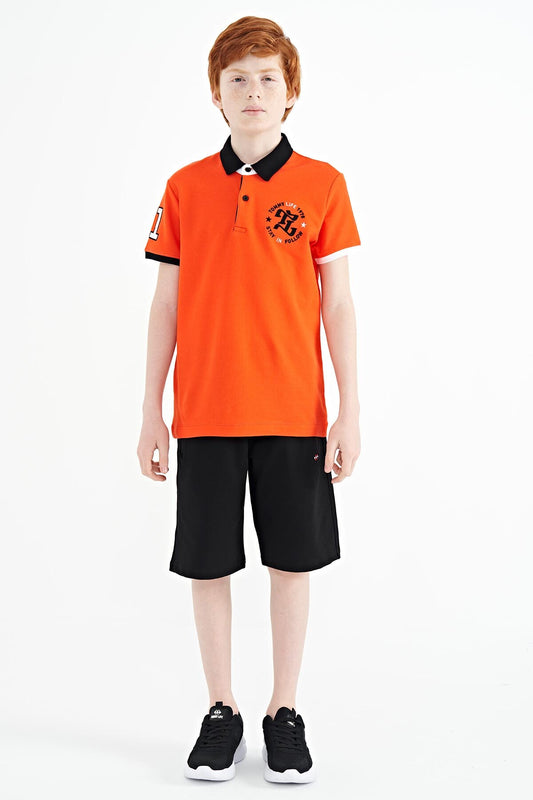 Orange Arm Chest Embroidery Detailed Standard Pattern Polo Collar Boys T-Shirt - 11086