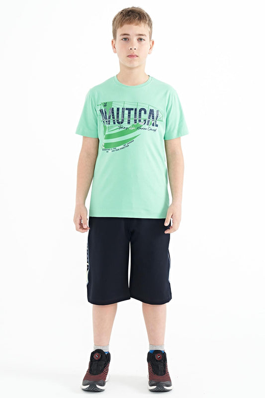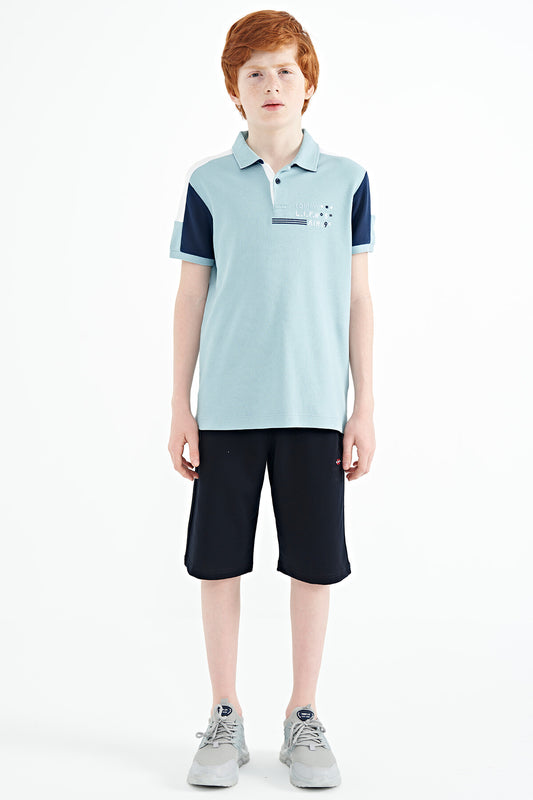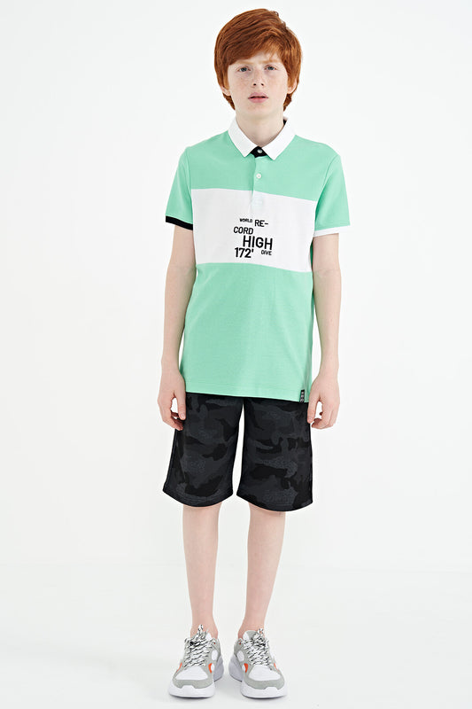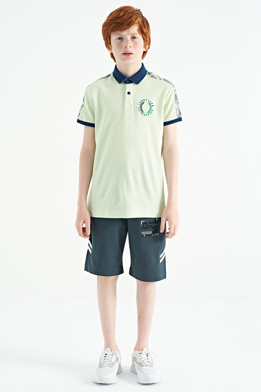 Light Green Print Detailed Polo Collar Standard Fit Boys' T-Shirt - 11166