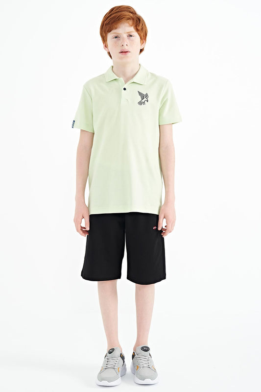 Light Green Minimal Embroidery Detailed Standard Fit Polo Collar Boys' T-Shirt - 11084