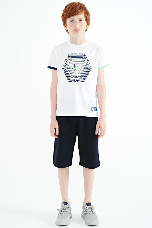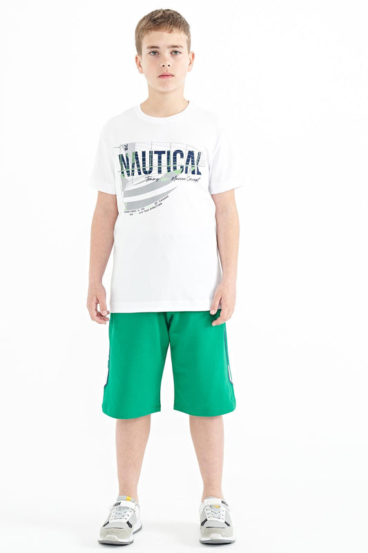 Colorful Detailed Printed Standard Cut White Cuffed Sleeve Boys' T-Shirt - 11156