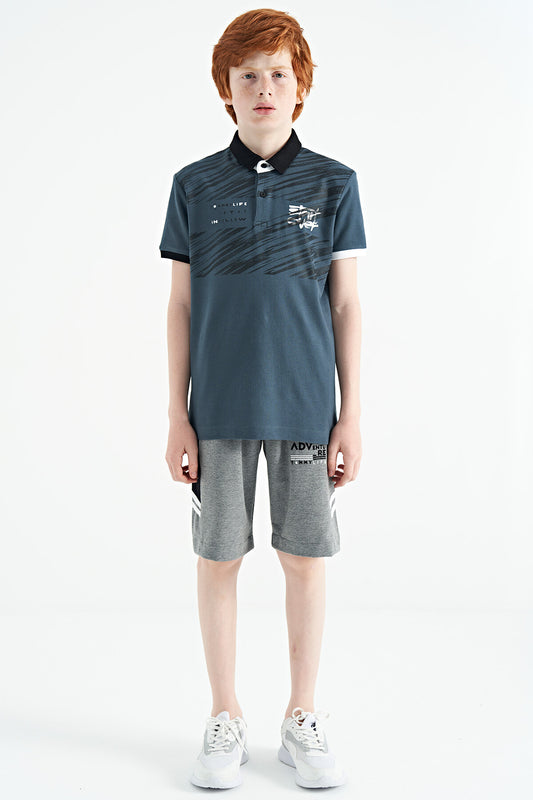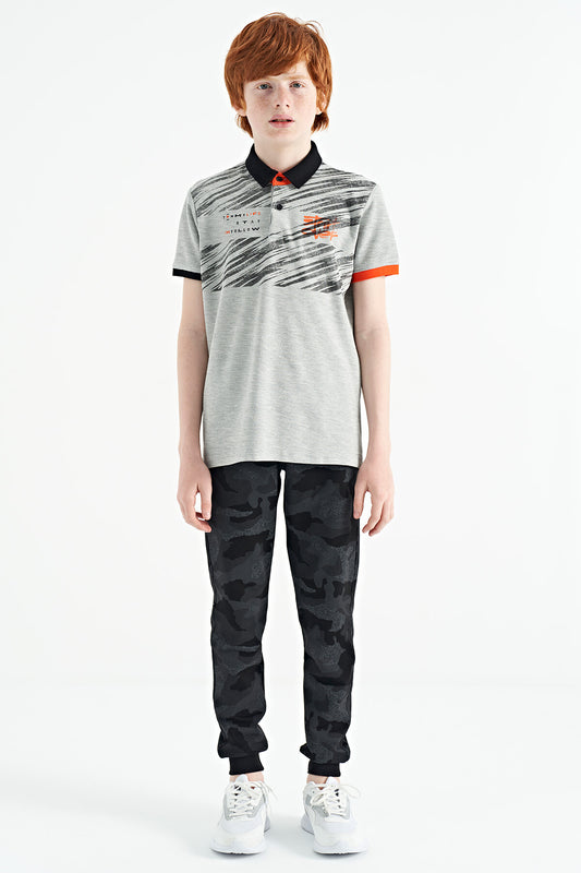 Grey Melange Print Detailed Polo Collar Standard Fit Boys' T-Shirt - 11161