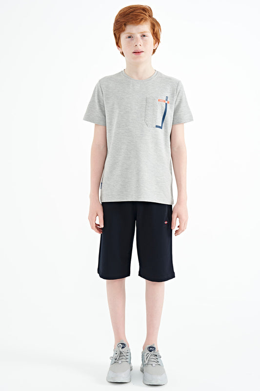 Grey Melange Neck Detailed O Collar Standard Fit Boys' T-Shirt - 11120