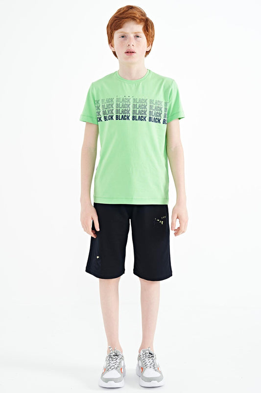 Neon Green Print O Collar Standard Fit Boys T-Shirt - 11149