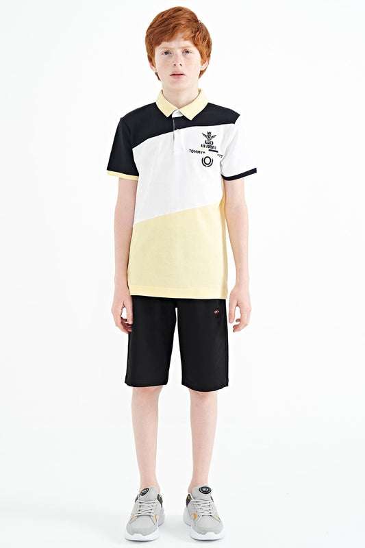 Colorful Embroidered Block Detailed Standard Cut Polo Collar Boys T-Shirt - 11088