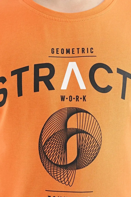 Orange Print O Collar Standard Cut Boys T-Shirt - 11119