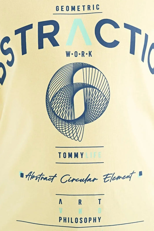 Yellow Print O Collar Standard Cut Boys' T-Shirt - 11119