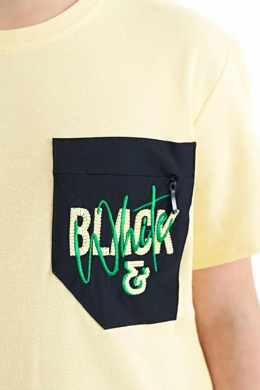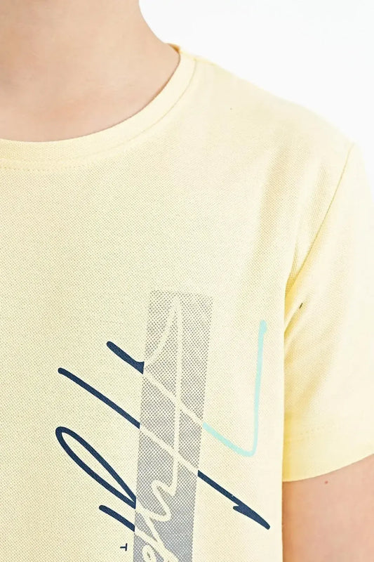 Yellow Print Detailed O Collar Standard Cut Boys' T-Shirt - 11103