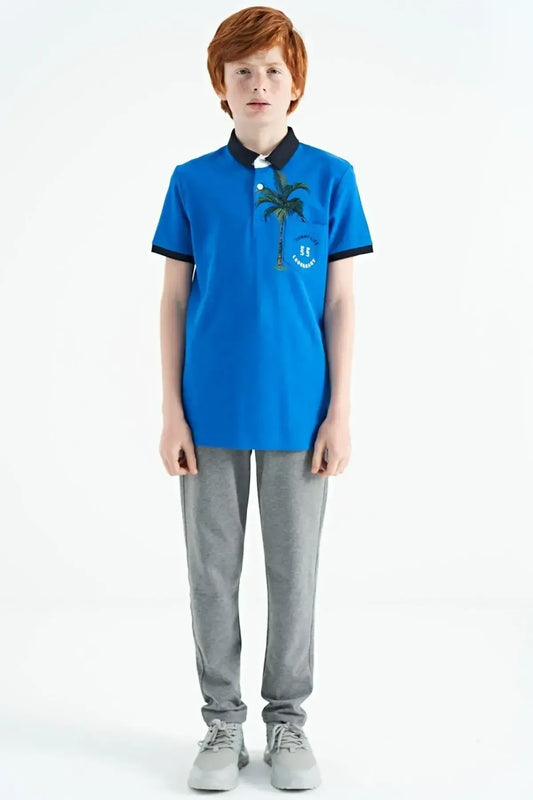 Printed Pocket Detailed Standard Fit Polo Collar Boys T-Shirt - 11144