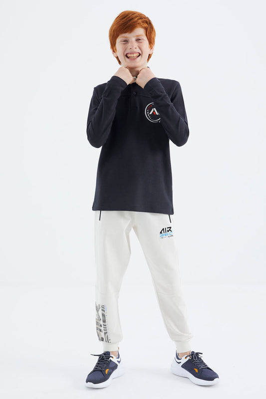 White Embroidered Detailed Standard Template Polo Collar Boys T-Shirt - 11085