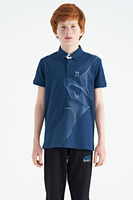 Indigo Print Detailed Standard Fit Polo Collar Boys T-Shirt - 11164