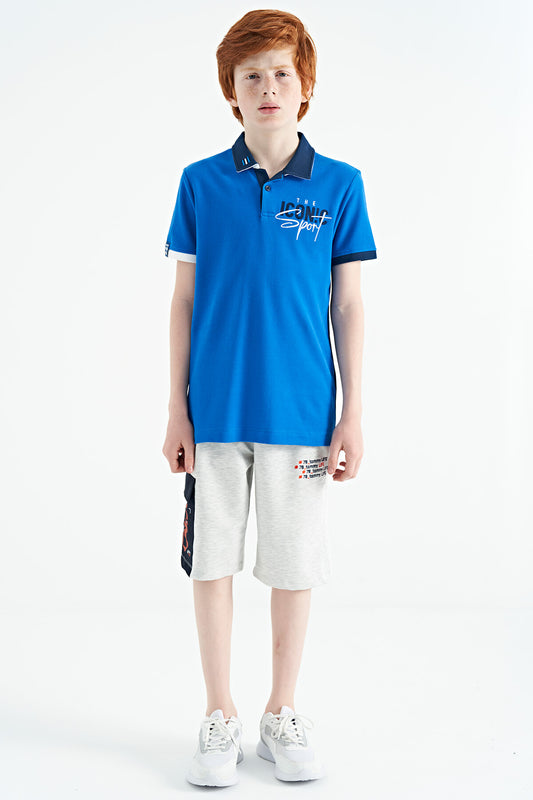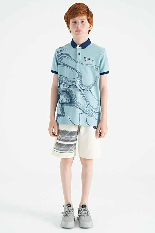Light Blue Print Detailed Standard Fit Polo Collar Boys T-Shirt - 11165