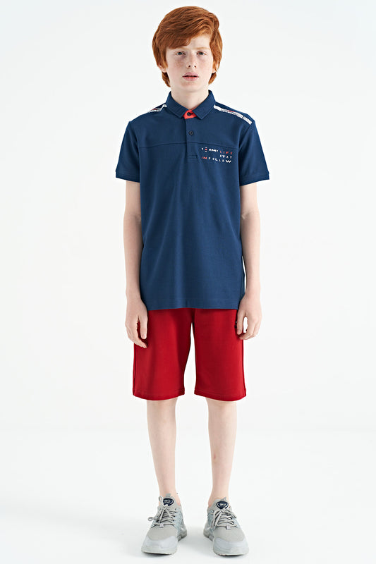 Indigo Print Detailed Standard Fit Polo Collar Boys' T-Shirt - 11140
