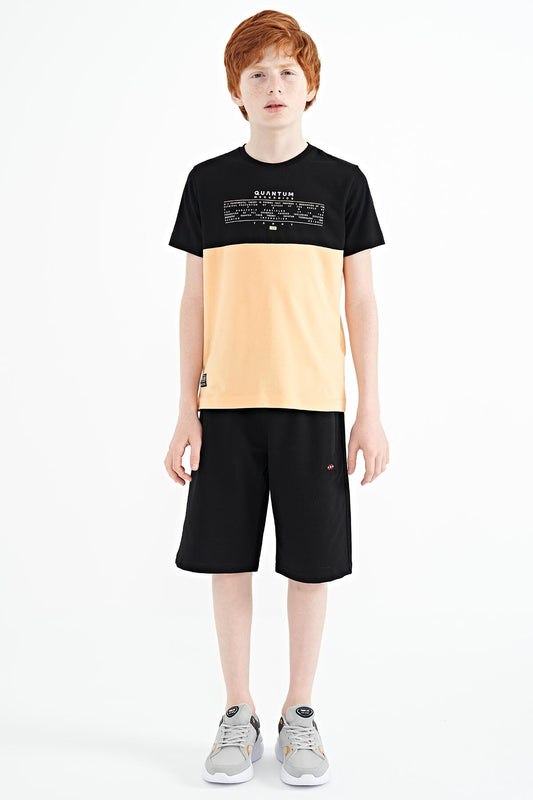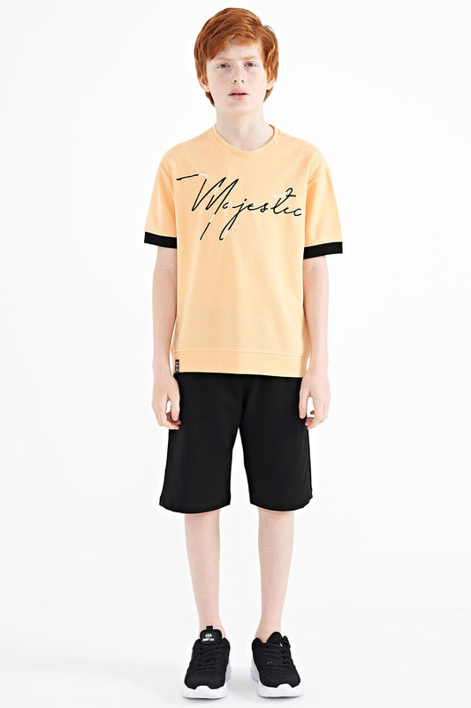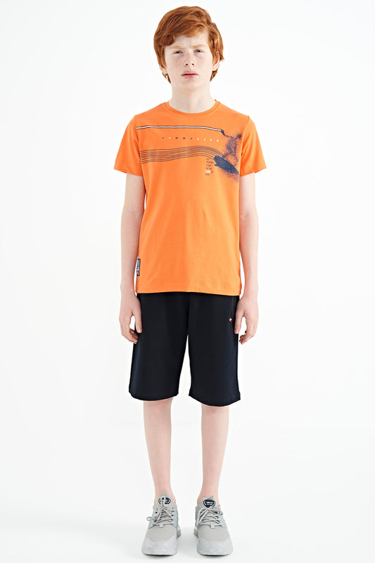 Orange Print Detailed Standard Mold O Collar Boys' T-Shirt - 11133