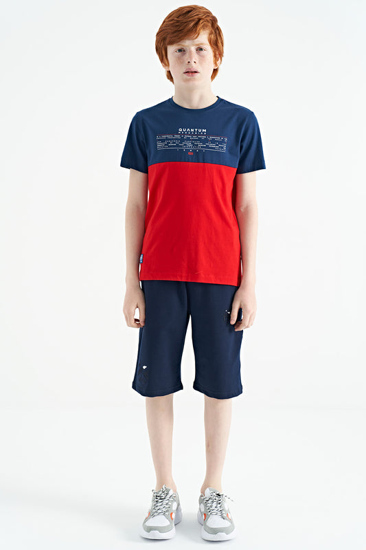 Red Print Color Block Standard Fit O Collar Boys T-Shirt - 11134