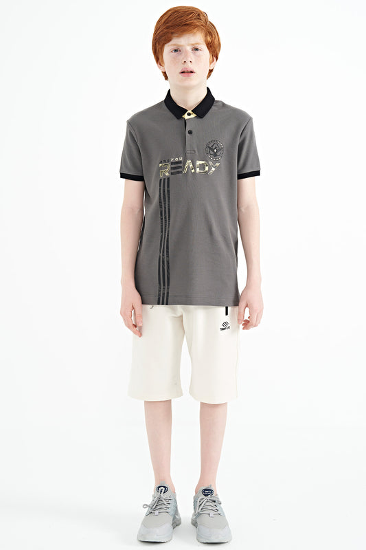 Dark Gray Print Pattern Standard Fit Polo Collar Boys' T-Shirt - 11143