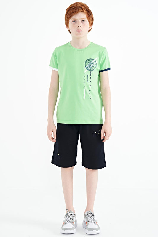 Neon Green Print Detailed O Collar Standard Fit Boys T-Shirt - 11131