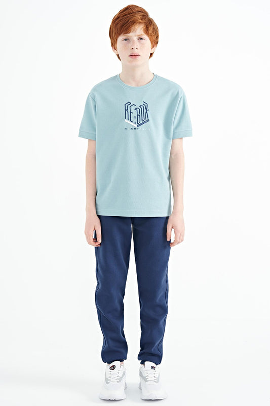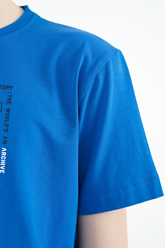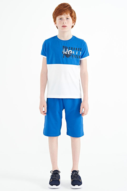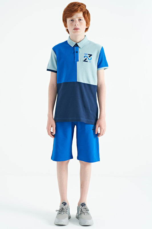 Blue Collar Color Block Print Detailed Standard Cut Boys' T-Shirt - 11111