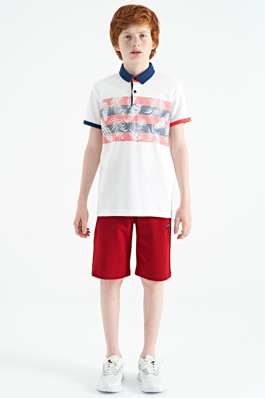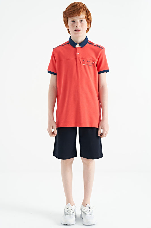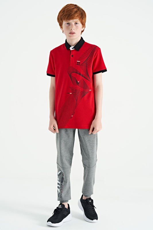 Red Print Detailed Standard Cut Polo Collar Boys T-Shirt - 11164