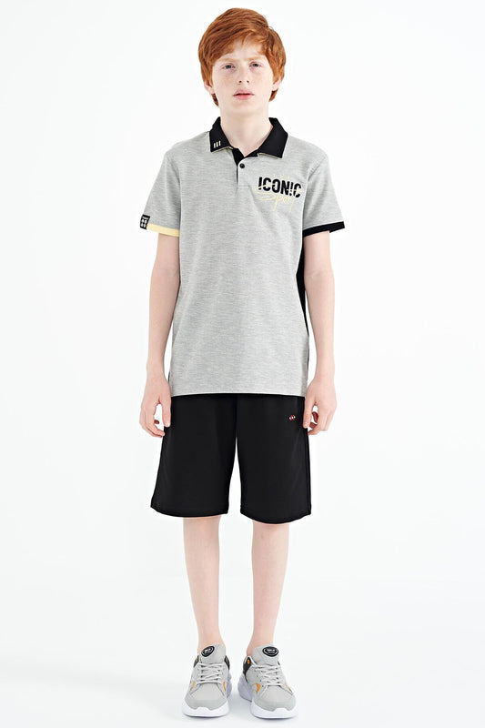 Grey Melange Collar Chest Embroidered Detailed Standard Fit Polo Collar Boys T-Shirt - 11139