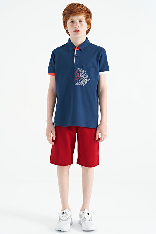 Indigo Front Pocket Detailed Print Standard Fit Polo Collar Boys T-Shirt - 11102