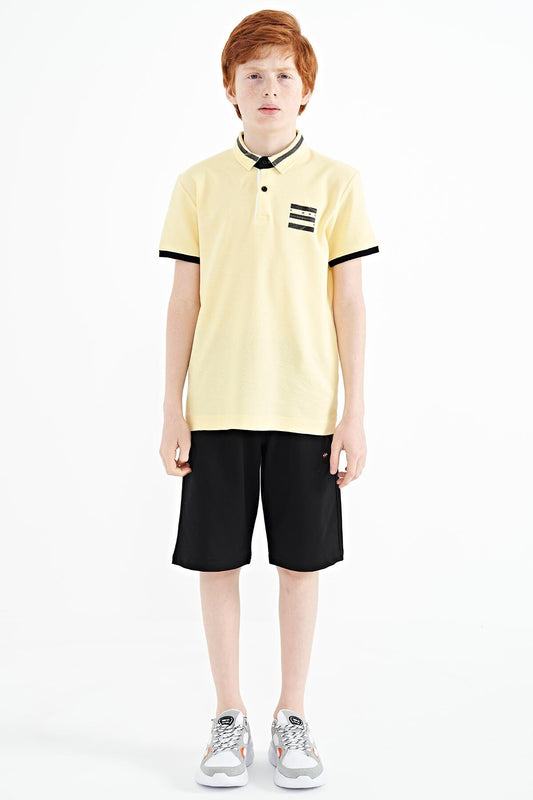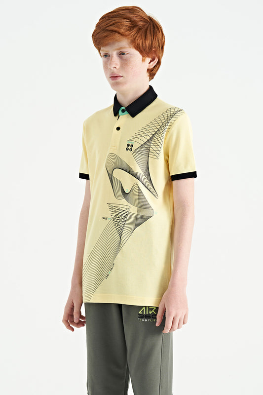 Yellow Print Detailed Standard Mold Polo Collar Boys T-Shirt - 11101