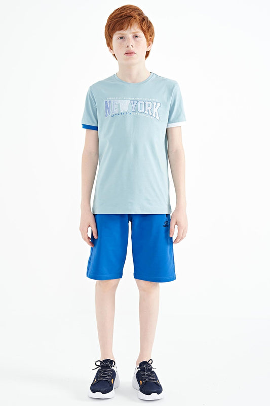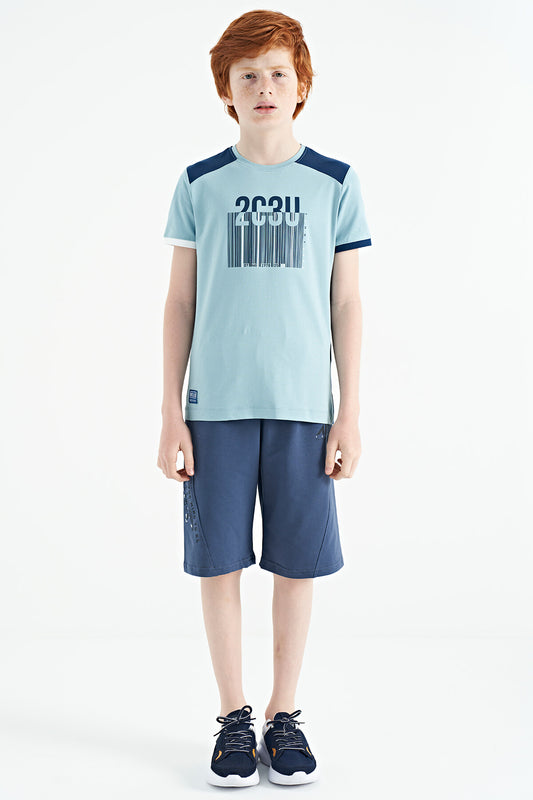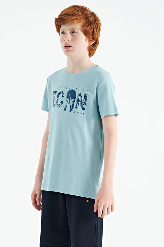 Light Blue Print Detailed O Collar Standard Fit Boys T-Shirt - 11157