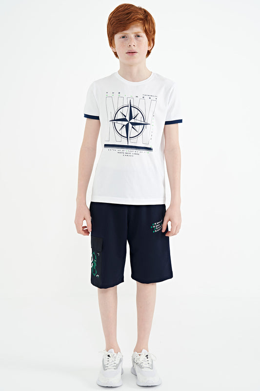 White Compass Printed Standard Template O Collar Boys T-Shirt - 11106