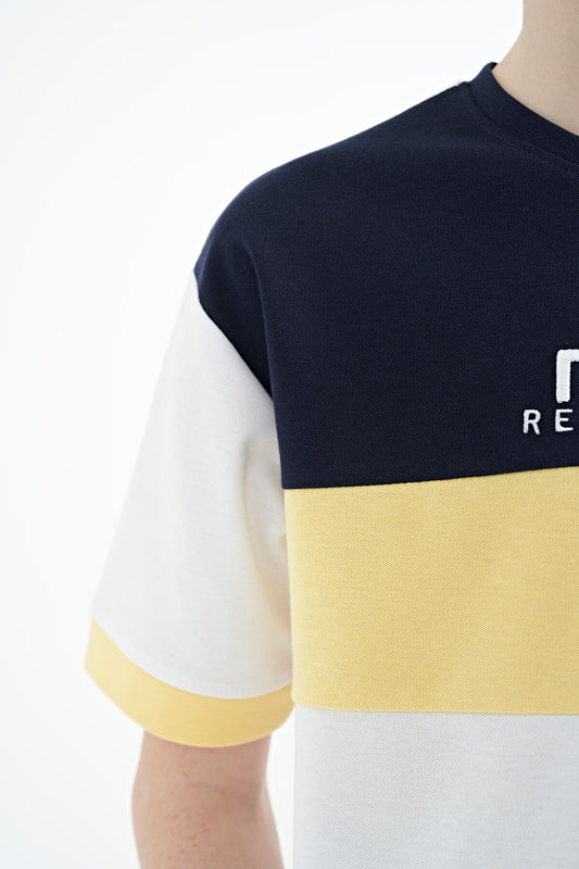 White Printed Color Block Standard Fit O Collar Boys T-Shirt - 11134