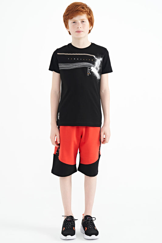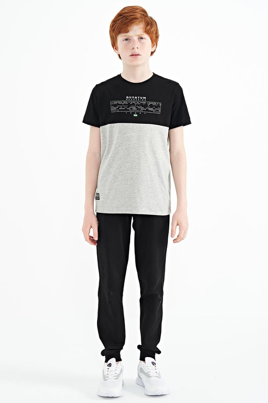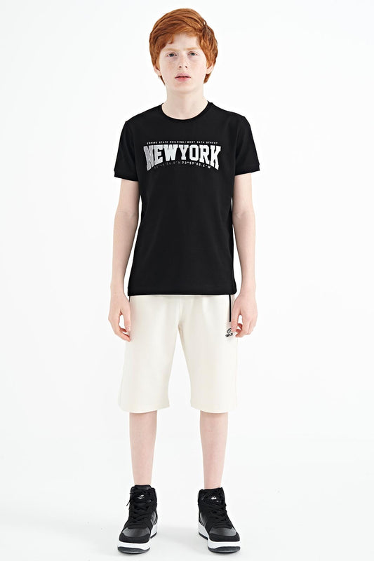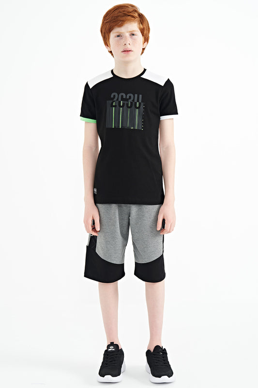 Black Print Detailed O Collar Standard Fit Boys T-Shirt - 11157