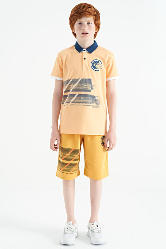 Melon Inside Print Detailed Polo Collar Standard Fit Boys T-Shirt - 11094
