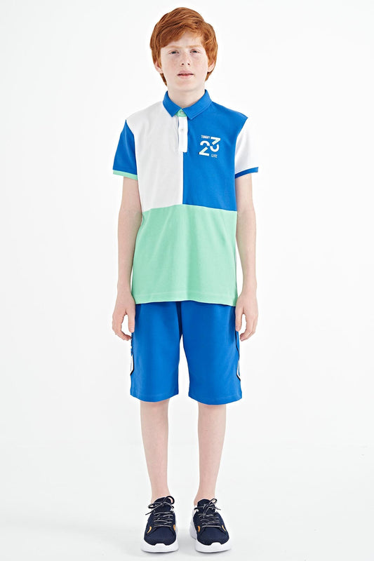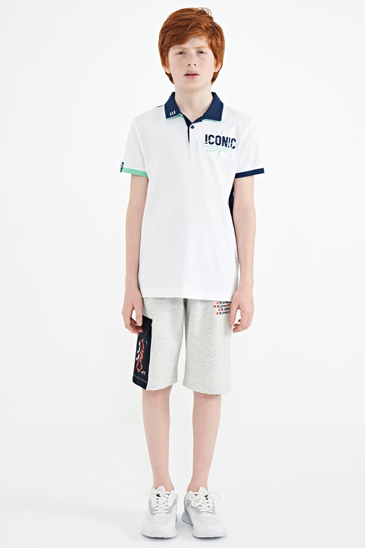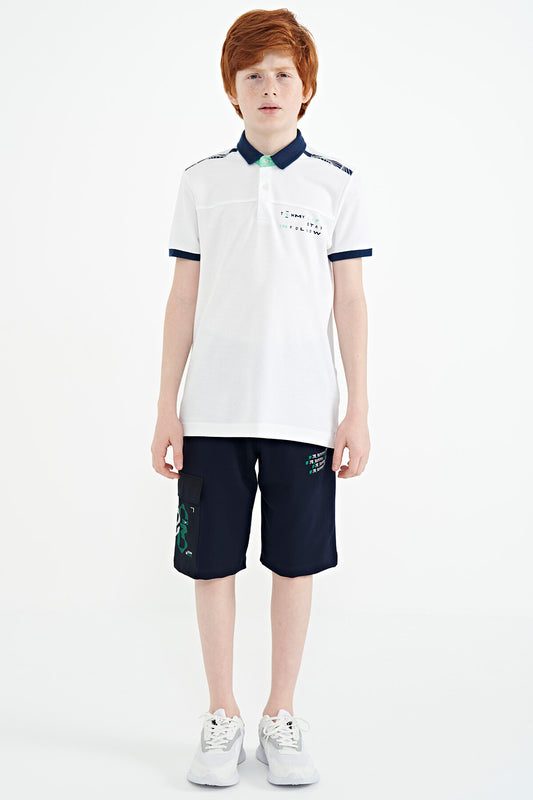 White Color Block Embroidered Detailed Standard Fit Polo Collar Boys T-Shirt - 11108