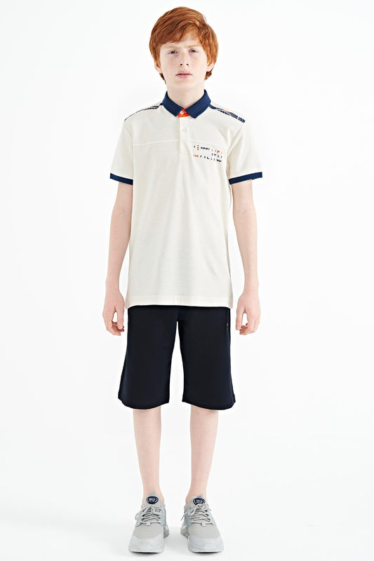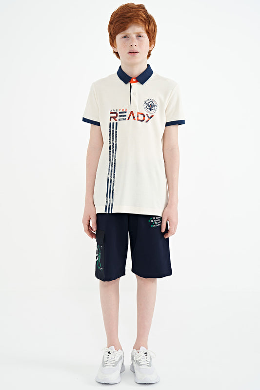 Ecru Print Detailed Standard Mold Polo Collar Boys T-Shirt - 11140