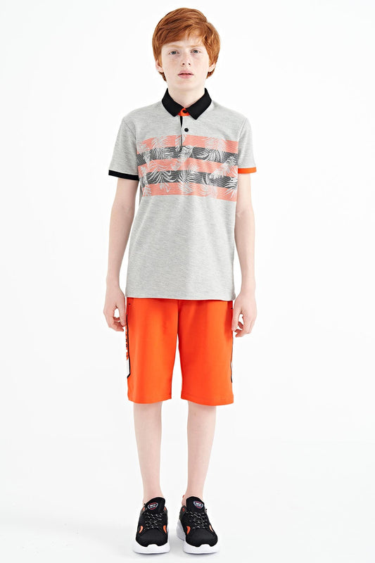 Grey Melange Print Detailed Standard Fit Polo Collar Boys' T-Shirt - 11101