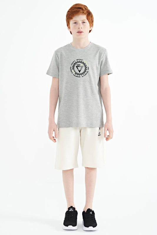 Grey Melange Embroidered Detailed O Collar Standard Fit Boys T-Shirt - 11115