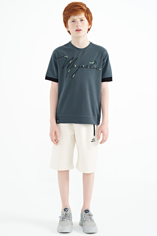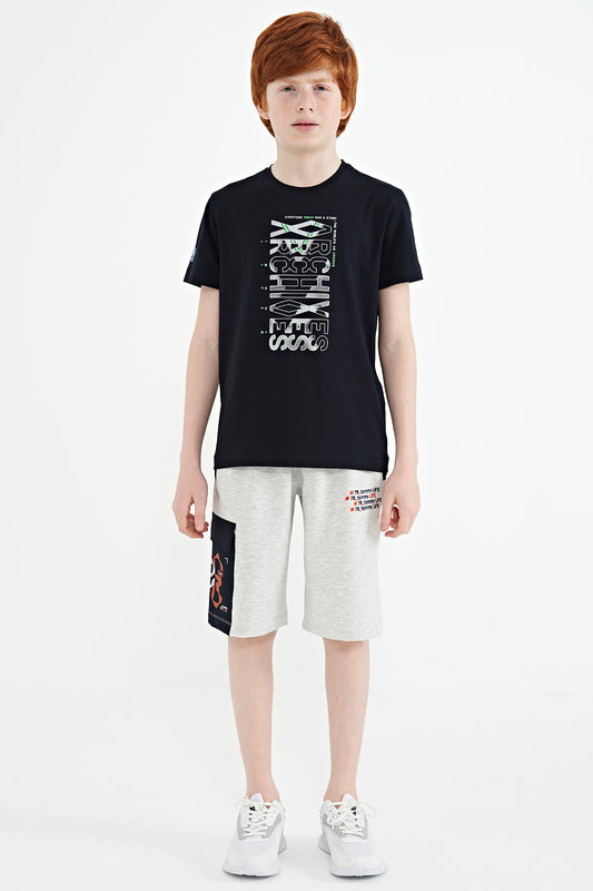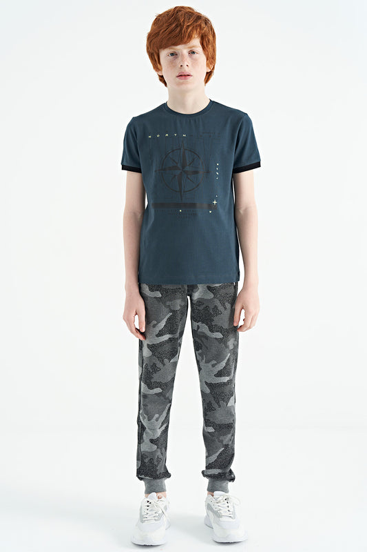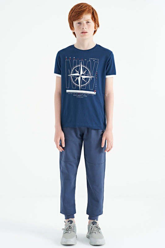 Navy Blue Pre-Print Detailed O Collar Standard Fit Boys' T-Shirt - 11099