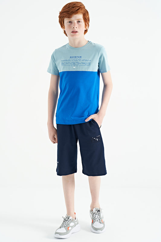 Standard Fit Color Block Print O Collar Boys' T-Shirt - 11134