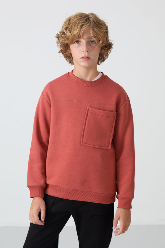 Thick Soft Textured Standard Fit Embroidered Fleece Boys' Tracksuit Set - 11218